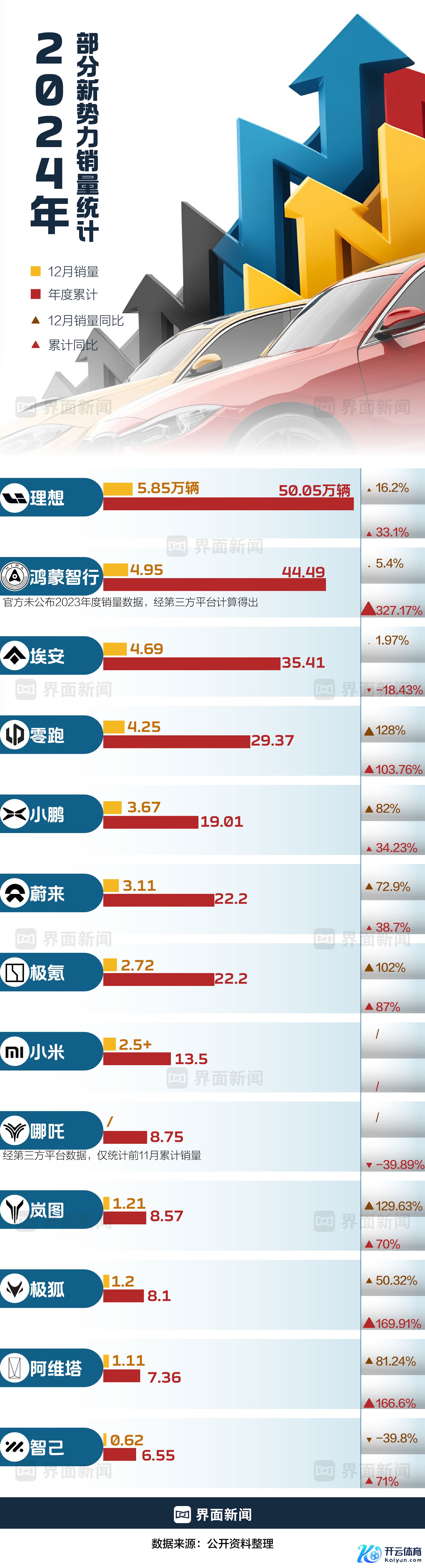 国有企业新能源子品牌在前年有了更彰着冲突,且销量增速比“蔚小理”快。2024年极狐品牌托付同比增长169.91%,达到7.36万辆;智己鄙人半年销量放缓,但全年托付量一样增长71%至6.55万辆。这些子品牌背靠大集团扶捏,领有最多的资源插足和最前沿手艺赋能,并肩负集团向新能源转型的重负。