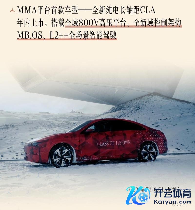 据悉,全新纯电CLA将于本年上市,新车基于MMA平台打造,搭载全域800V高压平台、全新域法例架构MB.OS、L2++全场景智能驾驶。