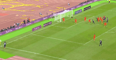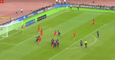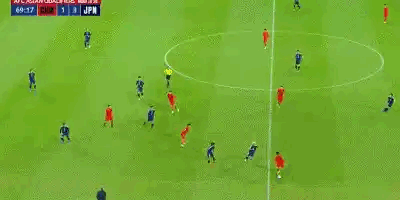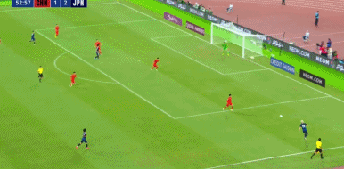 上半场已矣前终末一次遑急,日本队再次应用角球契机破门,板仓滉后点无东说念主盯防头球悉力破门