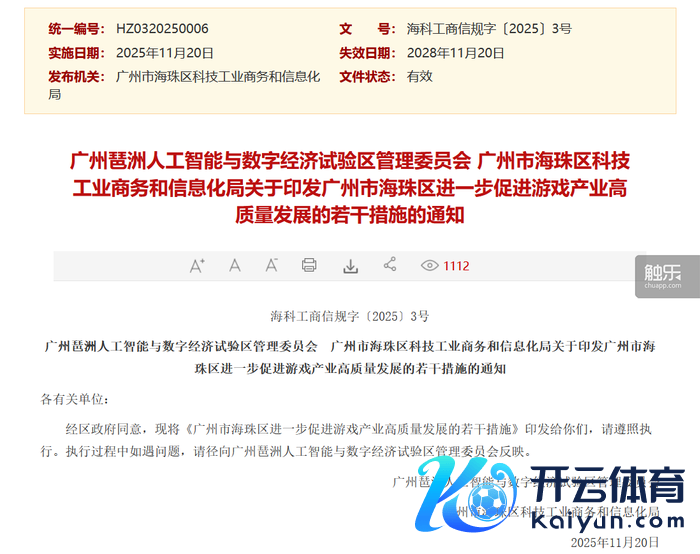 2025年11月20日,广州市海珠区科技工业商务和信息化局印发《广州市海珠区进一步促进游戏产业高质料发展的些许设施》(下文简称《设施》)。战术围绕企业耕作、研发立异、出海拓展、电竞耕作等重要圭臬推出系统性扶抓举措,以最高500万元的单项资金救助力度,旨在将海珠区打变成为游戏产业的立异策源地和生态汇聚区。