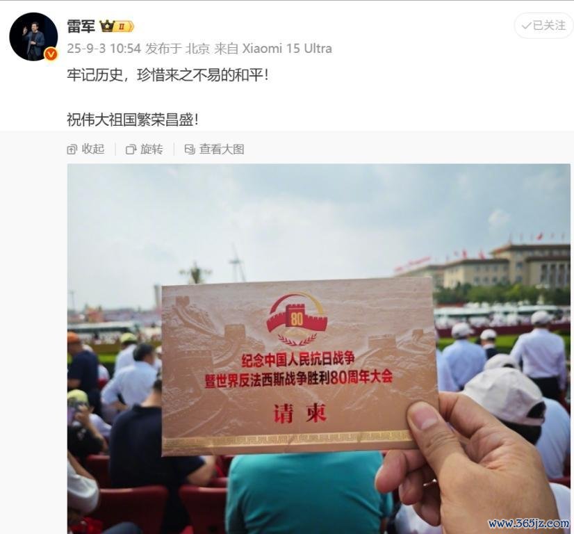 其实,不管是这些体坛巨星,如故身家千亿的企业家大佬,大略受邀出席不雅礼,算得上十分贫寒了。雠校截止之后,雷军亦然第一时辰发文:“难忘历史,爱戴贫寒认果然和平!”