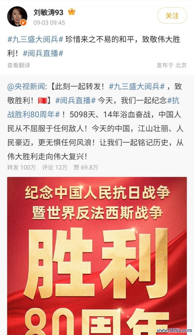 实质是她插足顾虑中国东谈主民抗日干戈暨宇宙反法西斯干戈成功 80 周年文艺晚会后的自拍。