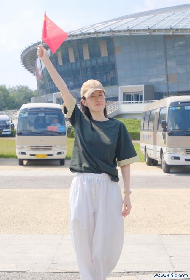 看得出,刘敏涛相称自豪,一只手拿着国旗举得高高的,另一只手放在身边,嘴巴抿得牢牢的,眼睛里充满了笑意。