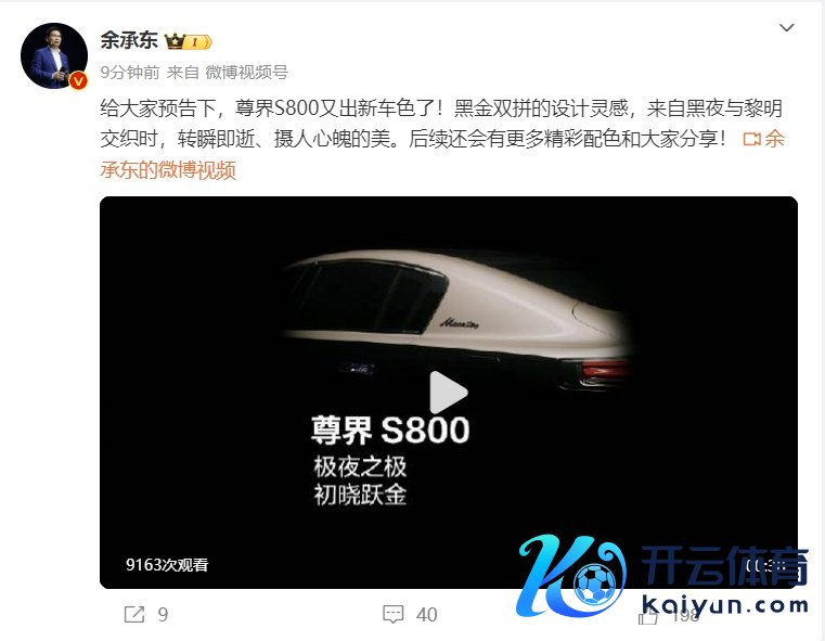 余承东:尊界S800将推出新配色开云体育(中国)官方网站余承东:尊界S800将推出新配色