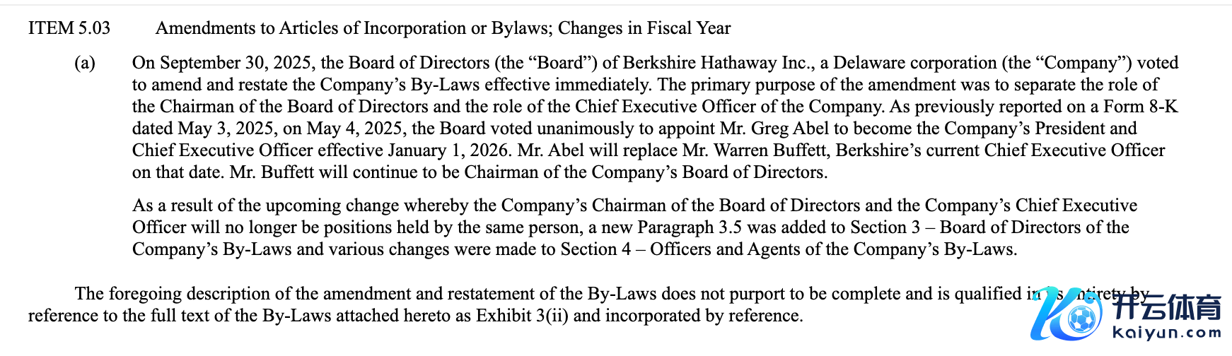 伯克希尔・哈撒韦修改公法则例,将董事长、首席践诺官职位分开伯克希尔・哈撒韦修改公法则例,将董事长、首席践诺官职位分开