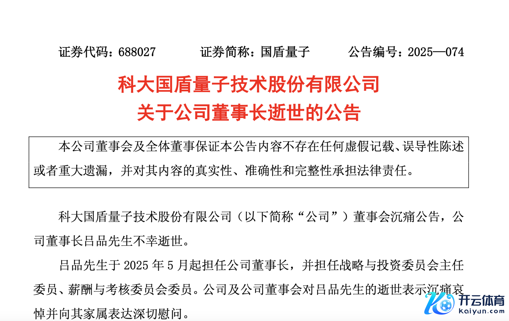 公告称,吕品于2025年5月起担任公司董事长,并担任计谋与投资委员会主任委员、薪酬与探员委员会委员。公司及公司董事会对吕品的灭尽暗示千里痛哀悼并向其家属抒发真切慰问。