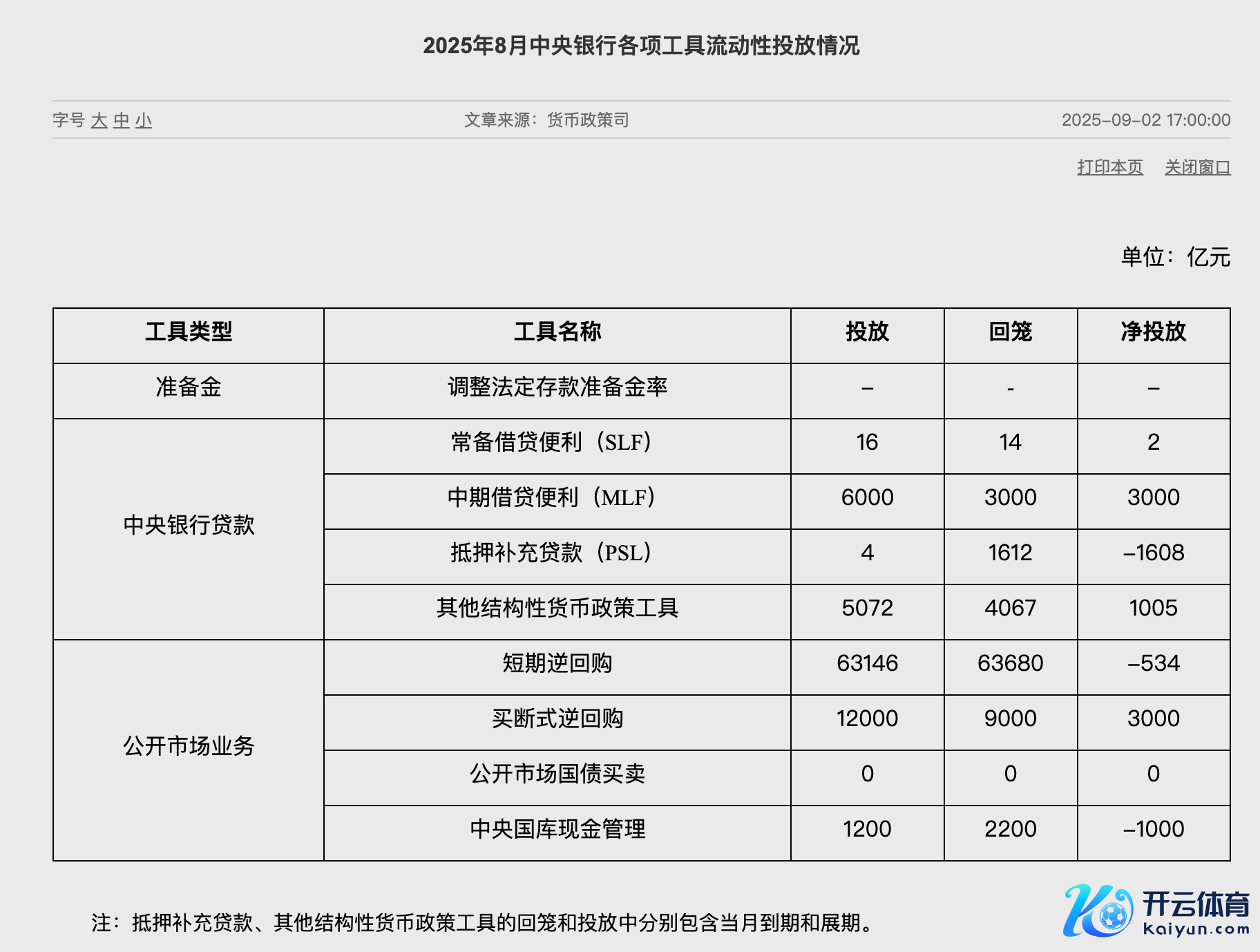 央行公布8月各项用具流动性投放情况 8月未进行公开商场国债交易kaiyun体育网页版登录央行公布8月各项用具流动性投放情况 8月未进行公开商场国债交易