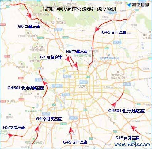 r晚岑岭技术,城区环路、东六环部分路段,以及万泉河路至圆明园西路、通惠河北路、莲石东路等城区说念路出城场地车流蚁集,京藏高速、京承高速、京通快速、京港澳高速、机场高速等高速公路出京场地车流量大。
